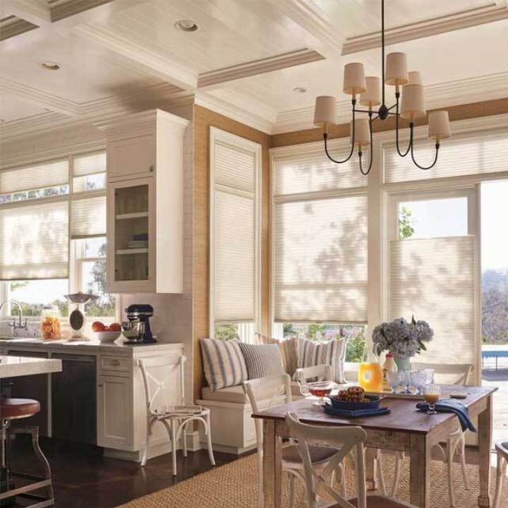 Window shades offer a softer look than blinds. We are happy to offer a range of window shade options including woven wood, pirouettes, and more. Let your style shine through while keeping the harsh light out with Cloud 9 Designs. Call our team today!